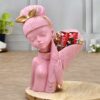 Decorative Flower Pink Lady Face with Basket Statue for Home Decor Showpiece Figurine